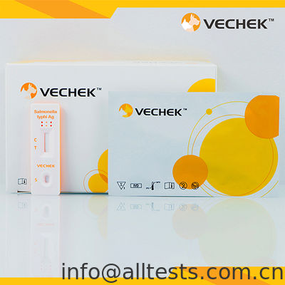 サルモネラ・タイフィアンチゲン迅速検査カセット (糞便) は,動物の糞便標本でサルモネラ・タイフィを検出するための,サンドイッチ側流免疫染色体検査に基づいた質的検査です..この試験では,膜はテストストライプのテストライン領域に,サルモネラ型抗体で前もって覆われます.試験中に,標本は,サルモネラ・タイフィ抗体で覆われた粒子と反応します.混合物は毛細血管による作用によって色素学的に膜上へと移動し,膜上の反サルモネラチフィ抗体と反応し,検査線領域に彩色の線を生成する.テスト領域にこの色の線があることは,ポジティブな結果を示します.検察官が検察官を 検察官にコントロールライン領域には常に色線が表示され,適切なサンプル量が加えられ,膜のウィッキングが起こることを示します..