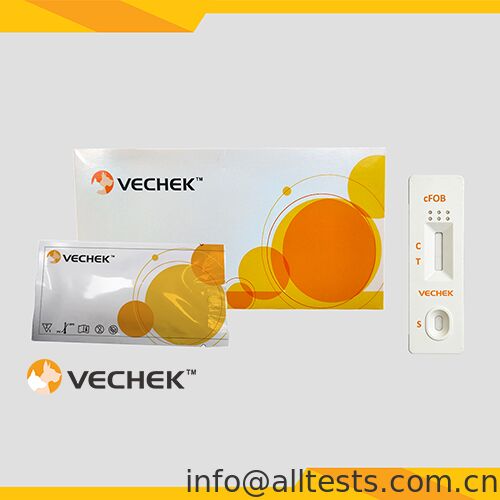 犬糞便潜血(FOB)迅速検査キット(糞便)は、犬の糞便中の糞便潜血抗原を3μg/mLのカットオフ値で定性的に検出するためのラテラルフロー免疫クロマトグラフィーアッセイであり、検出範囲は3μg/mL~30000μg/mLです。